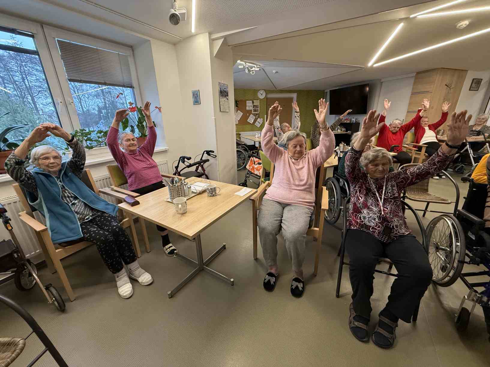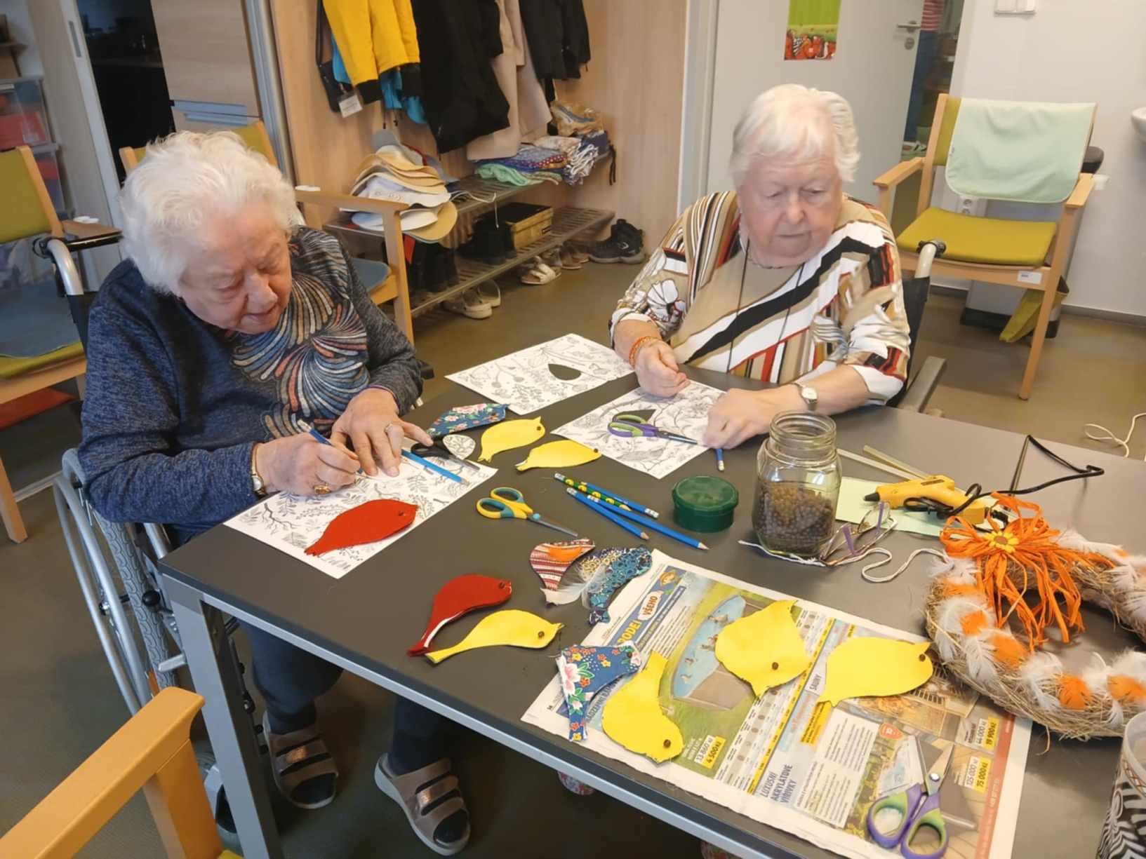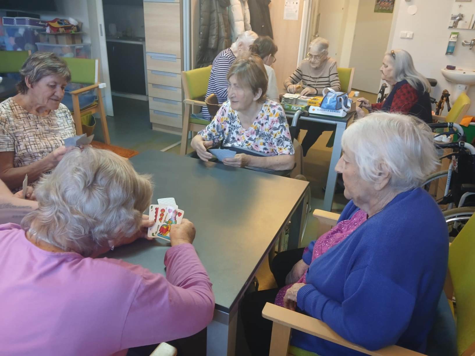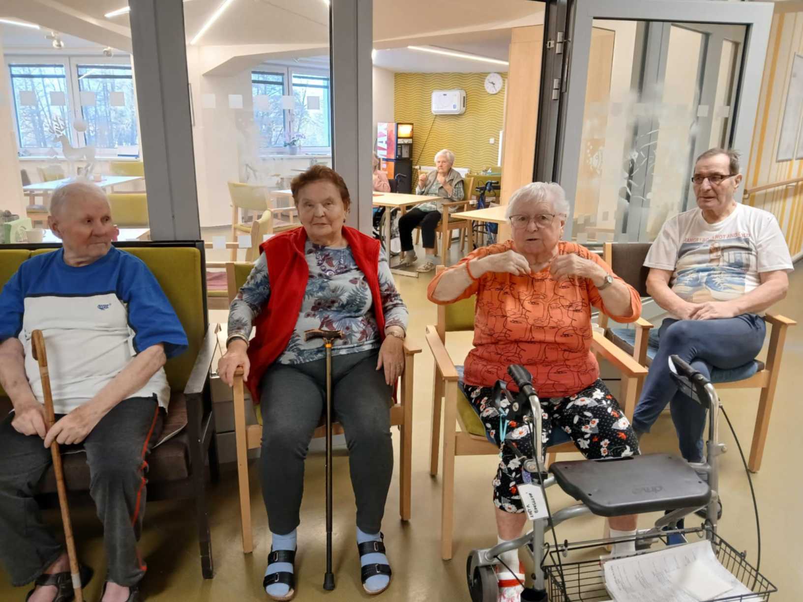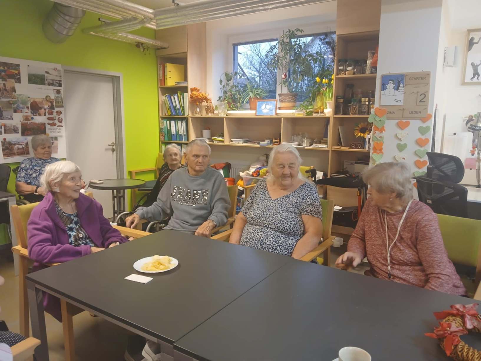 Zima je v plném proudu a naše aktivity se tudíž více soustřeďují do vnitřních prostor. Nezahálíme a pravidelně cvičíme individuálně i společně a využíváme virtuální brýle Kaleido - virtuální zážitky pro zdraví a kondici. Když počasí dovolí jdeme na krátké procházky. Odstrojili jsme vánoční stromečky, postupně uklidili vánoční výzdobu, jen sněhuláky jsme zatím nechali stát, ty k zimě patří. Nový rok jsme přivítali společným posezením. Pomalu začínáme s jarním tvořením a natřeli jsme truhlíky. Čas si krátím hraním deskových her, pečením i čtením. Trénujeme paměť a radost nám dělají naši čtyřnozí kamarádi při pravidelných návštěvách. Během ledna proběhlo i několik hudebních vystoupení.