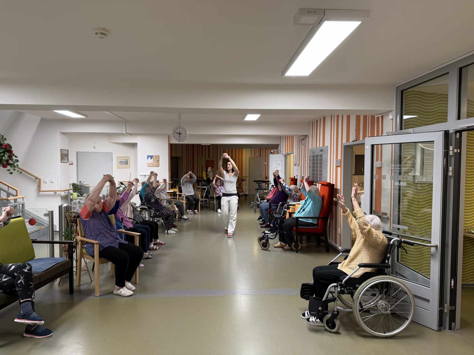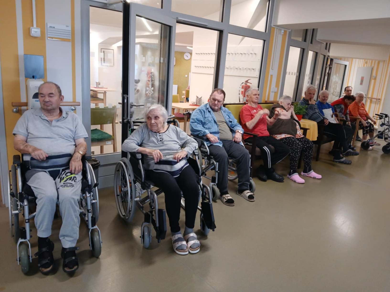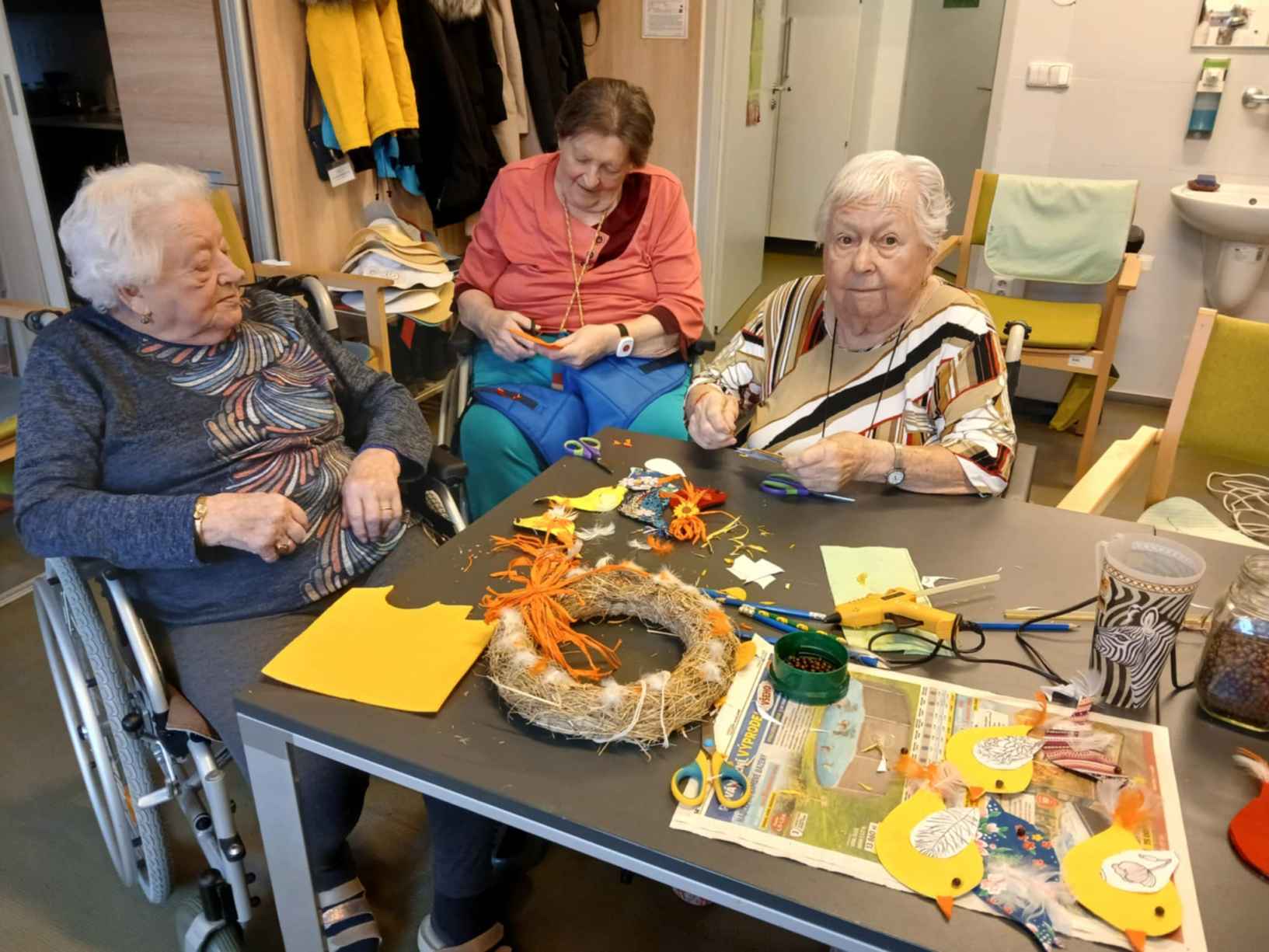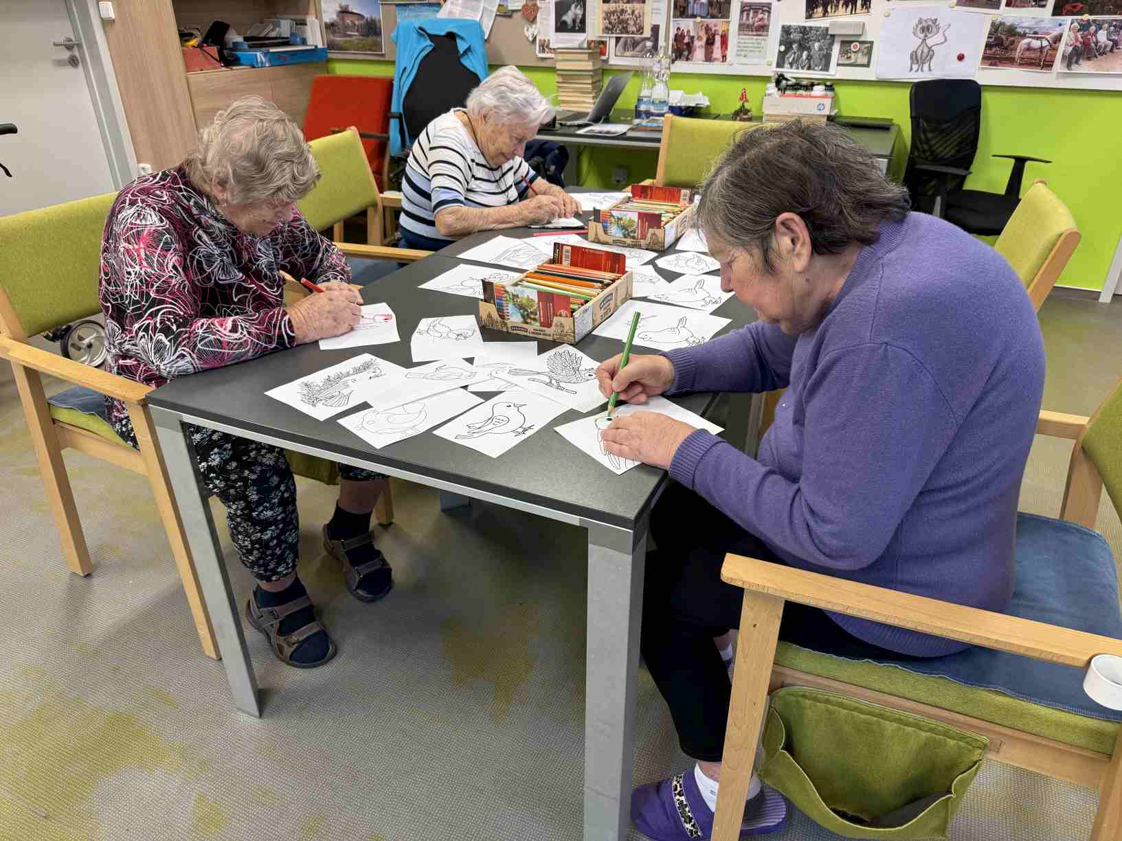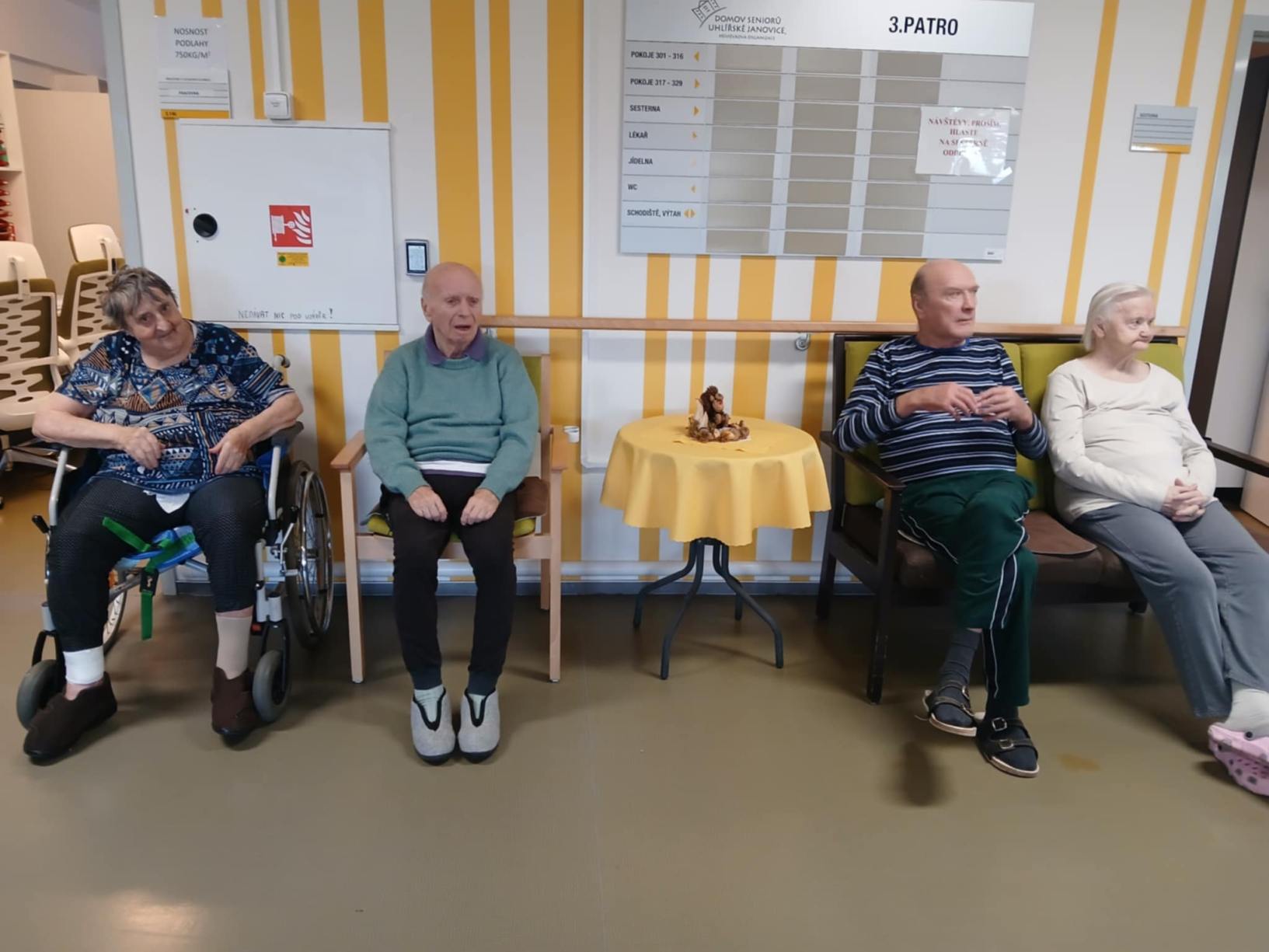 Zima je v plném proudu a naše aktivity se tudíž více soustřeďují do vnitřních prostor. Nezahálíme a pravidelně cvičíme individuálně i společně a využíváme virtuální brýle Kaleido - virtuální zážitky pro zdraví a kondici. Když počasí dovolí jdeme na krátké procházky. Odstrojili jsme vánoční stromečky, postupně uklidili vánoční výzdobu, jen sněhuláky jsme zatím nechali stát, ty k zimě patří. Nový rok jsme přivítali společným posezením. Pomalu začínáme s jarním tvořením a natřeli jsme truhlíky. Čas si krátím hraním deskových her, pečením i čtením. Trénujeme paměť a radost nám dělají naši čtyřnozí kamarádi při pravidelných návštěvách. Během ledna proběhlo i několik hudebních vystoupení.