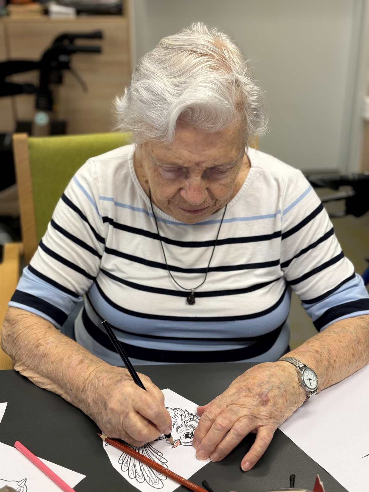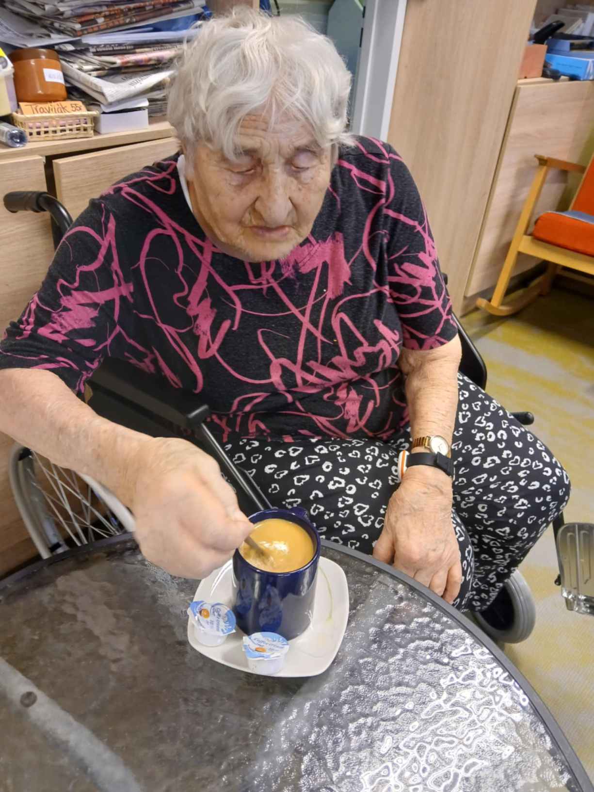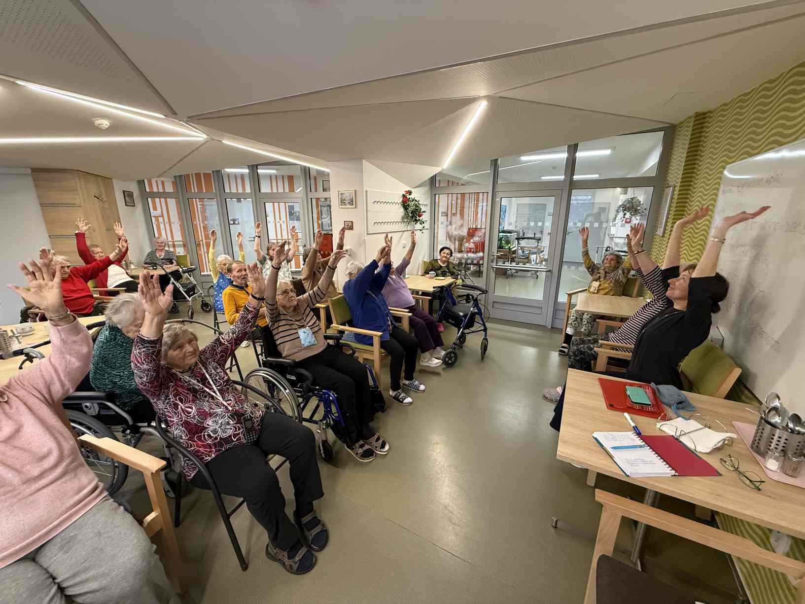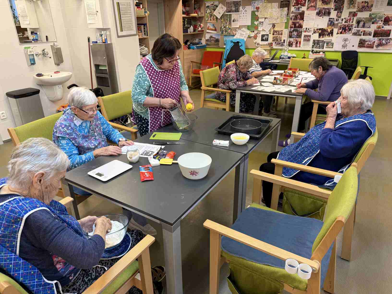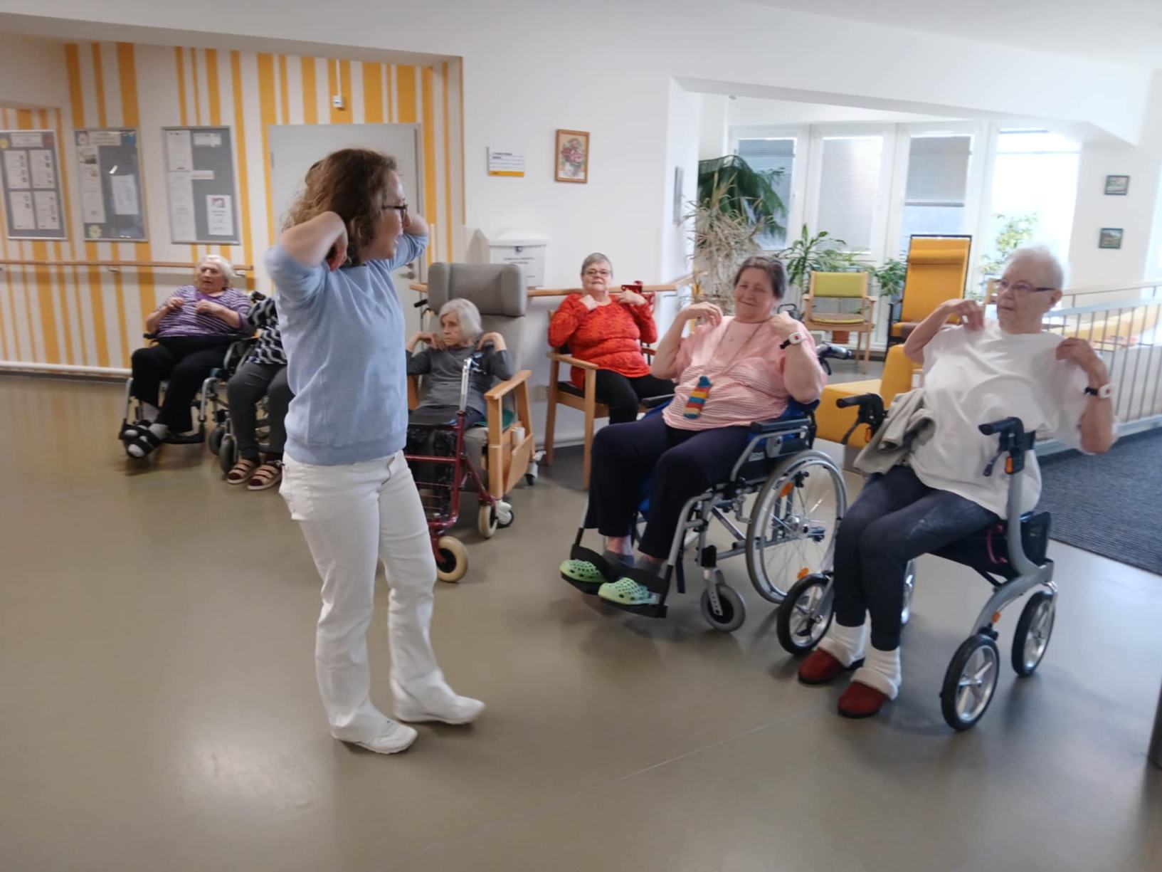 Zima je v plném proudu a naše aktivity se tudíž více soustřeďují do vnitřních prostor. Nezahálíme a pravidelně cvičíme individuálně i společně a využíváme virtuální brýle Kaleido - virtuální zážitky pro zdraví a kondici. Když počasí dovolí jdeme na krátké procházky. Odstrojili jsme vánoční stromečky, postupně uklidili vánoční výzdobu, jen sněhuláky jsme zatím nechali stát, ty k zimě patří. Nový rok jsme přivítali společným posezením. Pomalu začínáme s jarním tvořením a natřeli jsme truhlíky. Čas si krátím hraním deskových her, pečením i čtením. Trénujeme paměť a radost nám dělají naši čtyřnozí kamarádi při pravidelných návštěvách. Během ledna proběhlo i několik hudebních vystoupení.