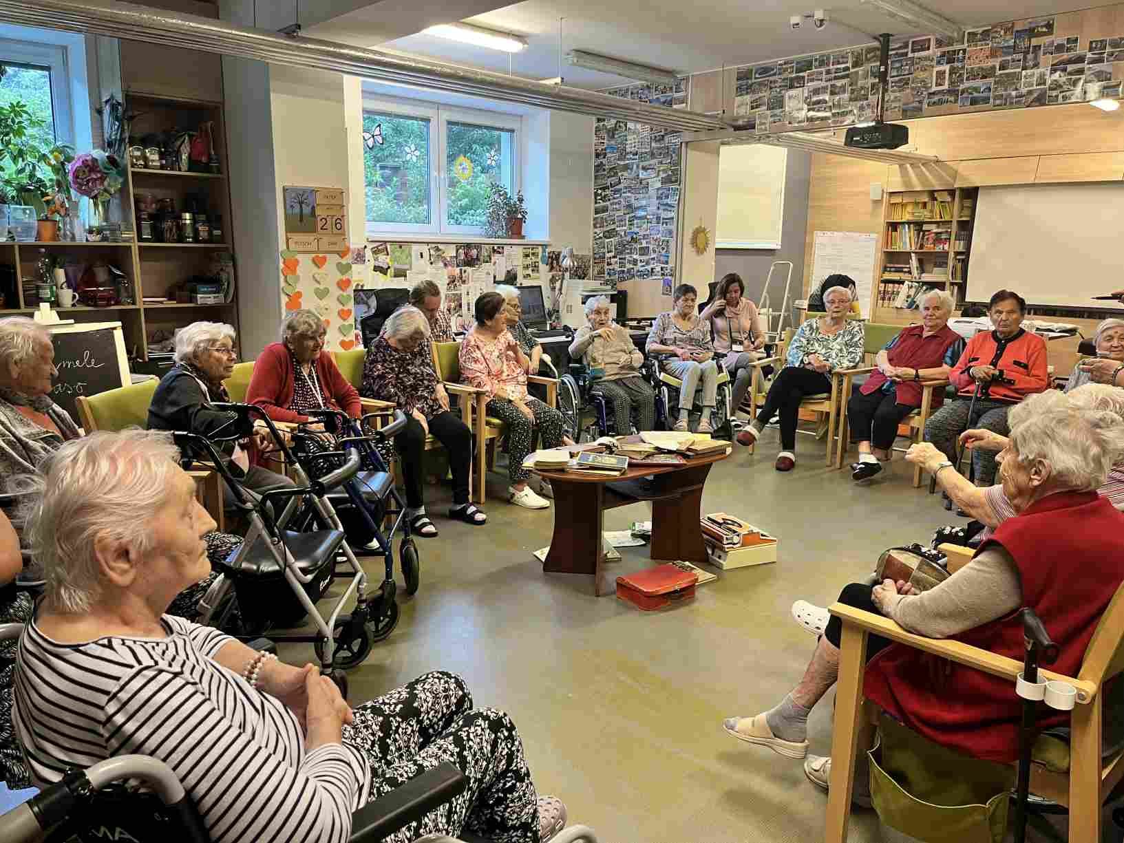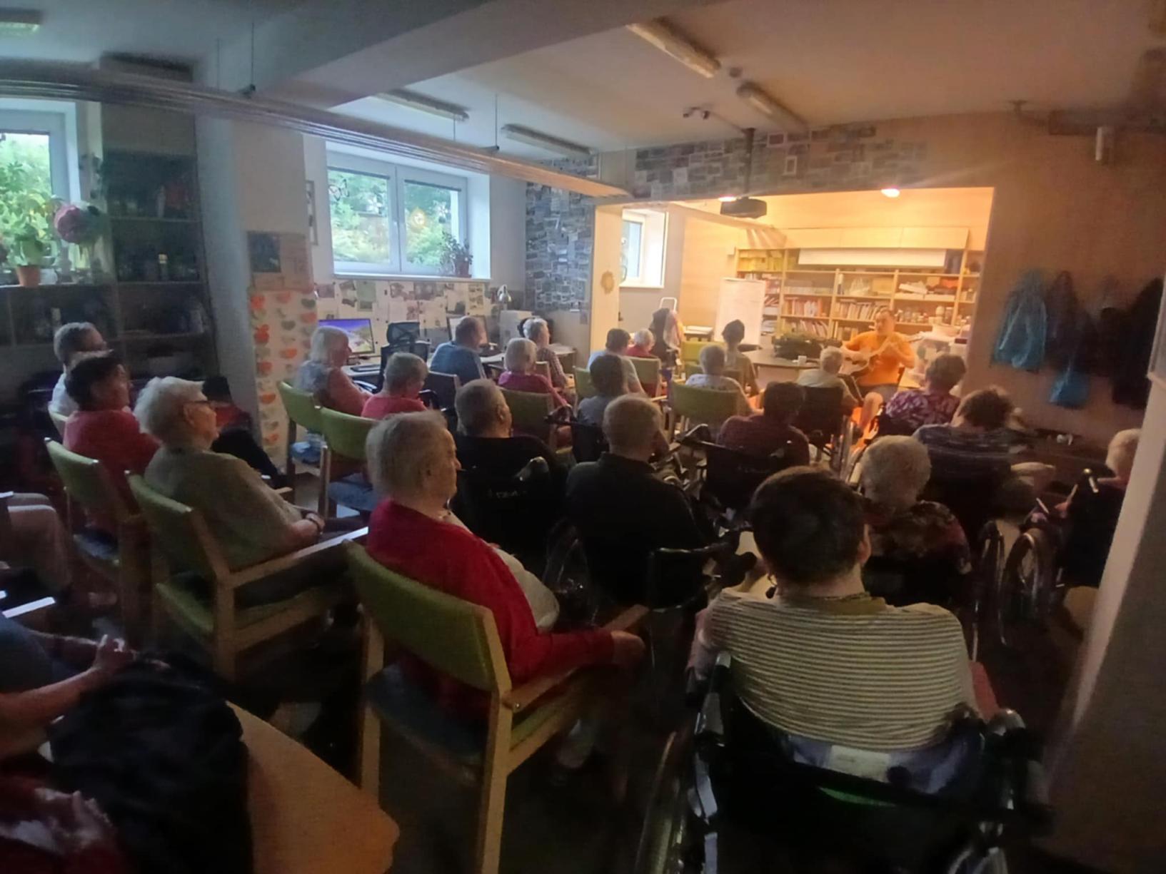 "Pěkné růže v zahrádkách věští pěkný podzimek a pozdní zimu" V září jsme společně oslavili 10. let DOMOVA. Vyráběli jsme podzimní motivy a mýdla. Pro setkání na Olešce jsme napekli bábovky. Poseděli při kávě, v hospůdce a oslavili jsme společné narozeniny v naší "KAVÁRNĚ". Připravili jsme celerovou pomazánku s mrkví. V rámci společného setkání jsme si povídali o škole, zazpívali si s panem Klečkou a Jakub Greschl nám přijel povyprávět o Číně. Zabalili jsme nasušené bylinky, zahráli jsme si Bingo a trénovali paměť i tělo. Plány na říjen naleznete na aktuálním plakátu. :)