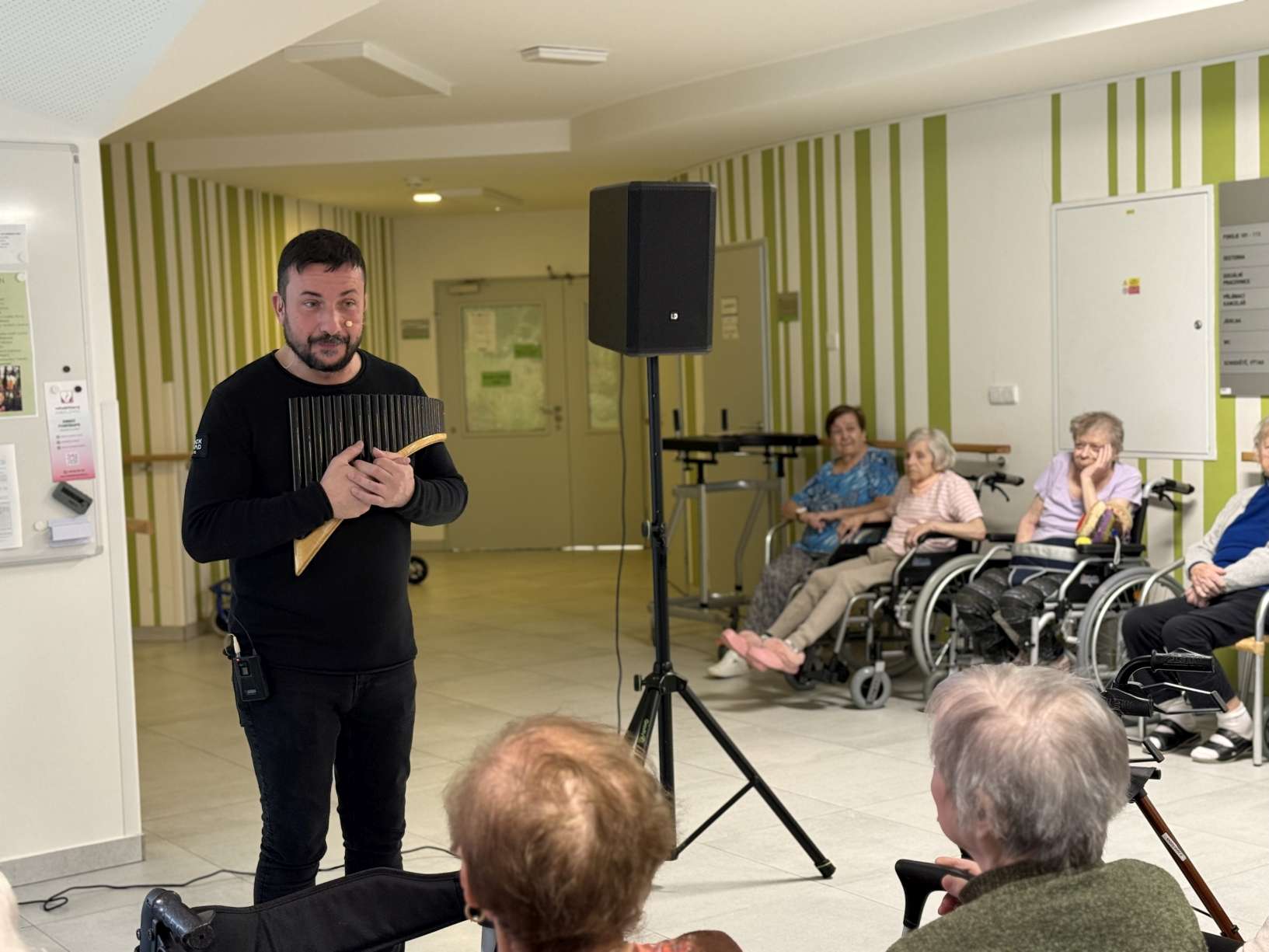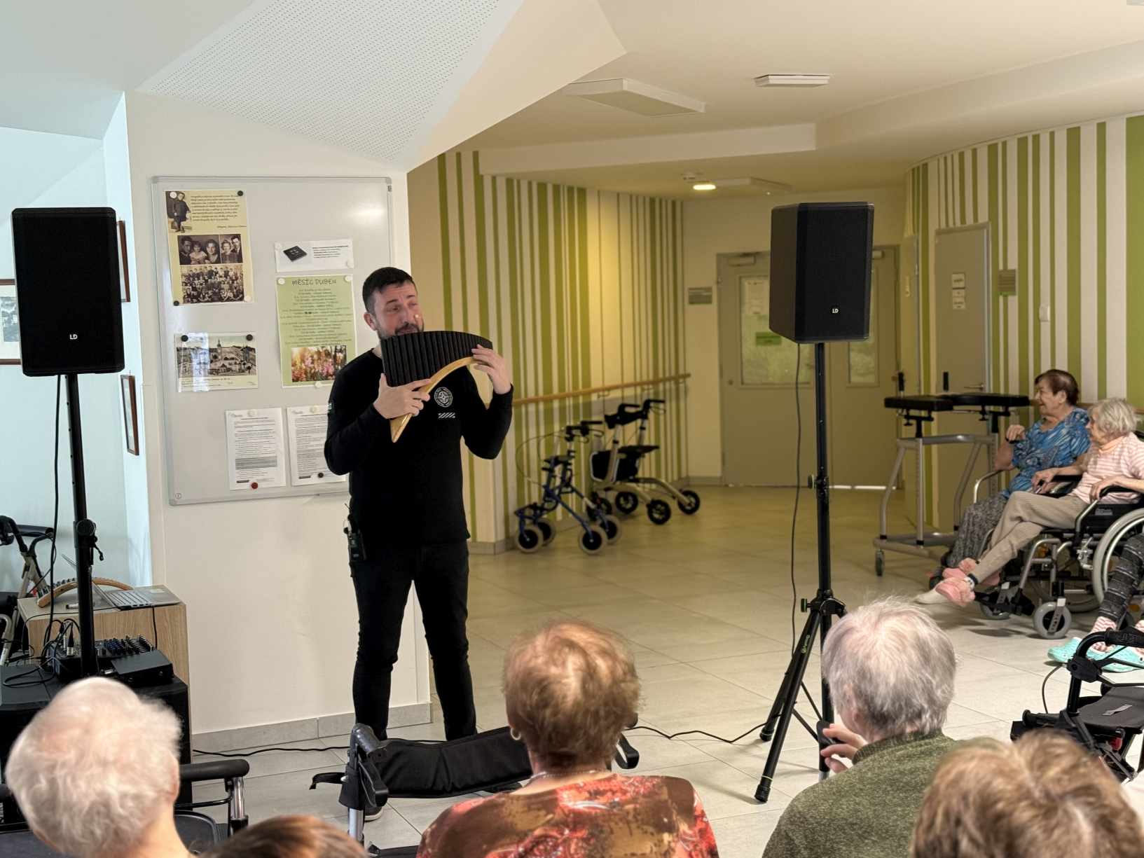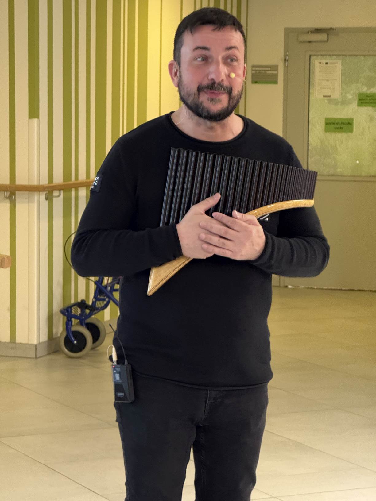 V pondělí nám zahrál pan Petr Tomeček na Panovu flétnu.