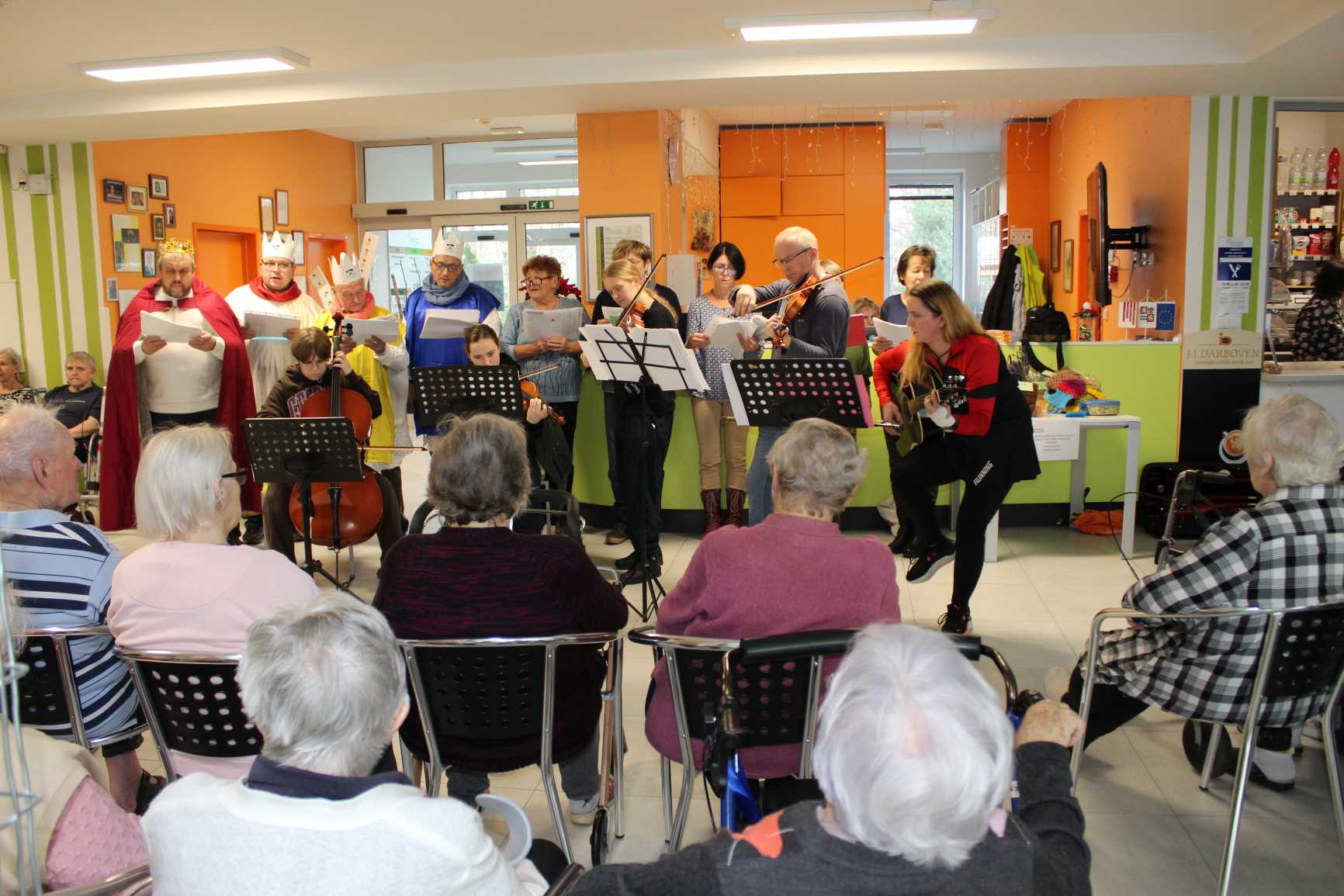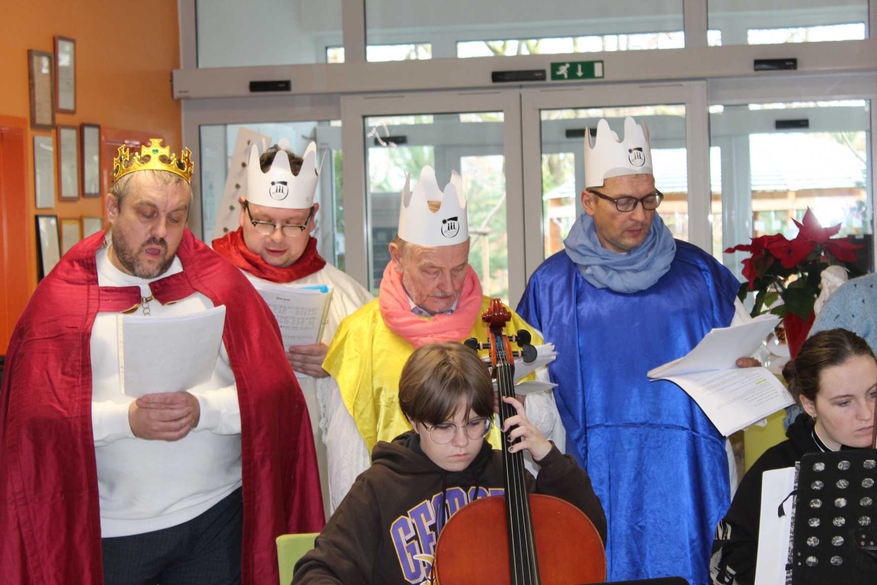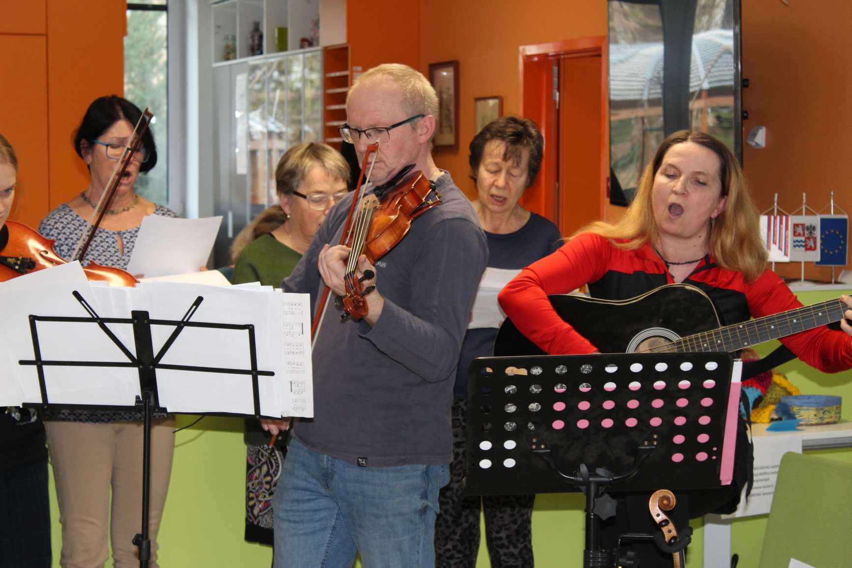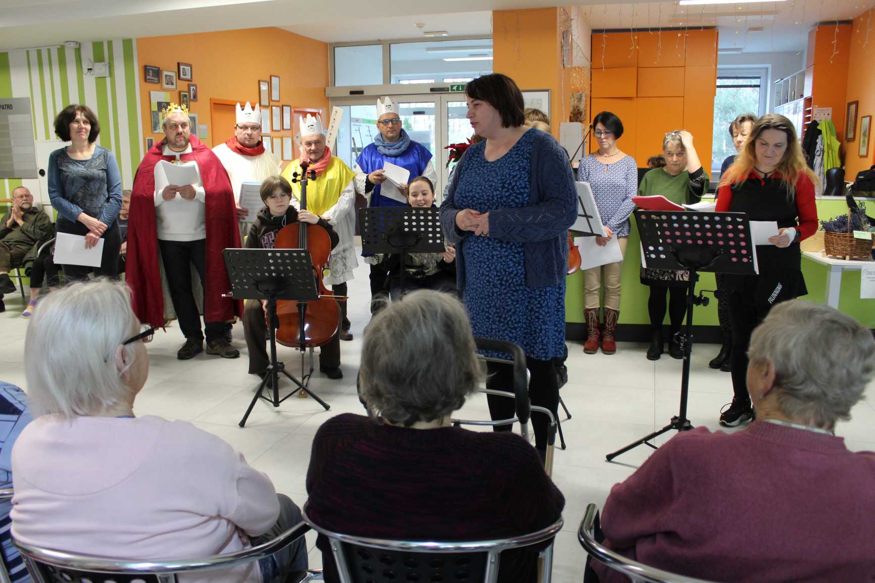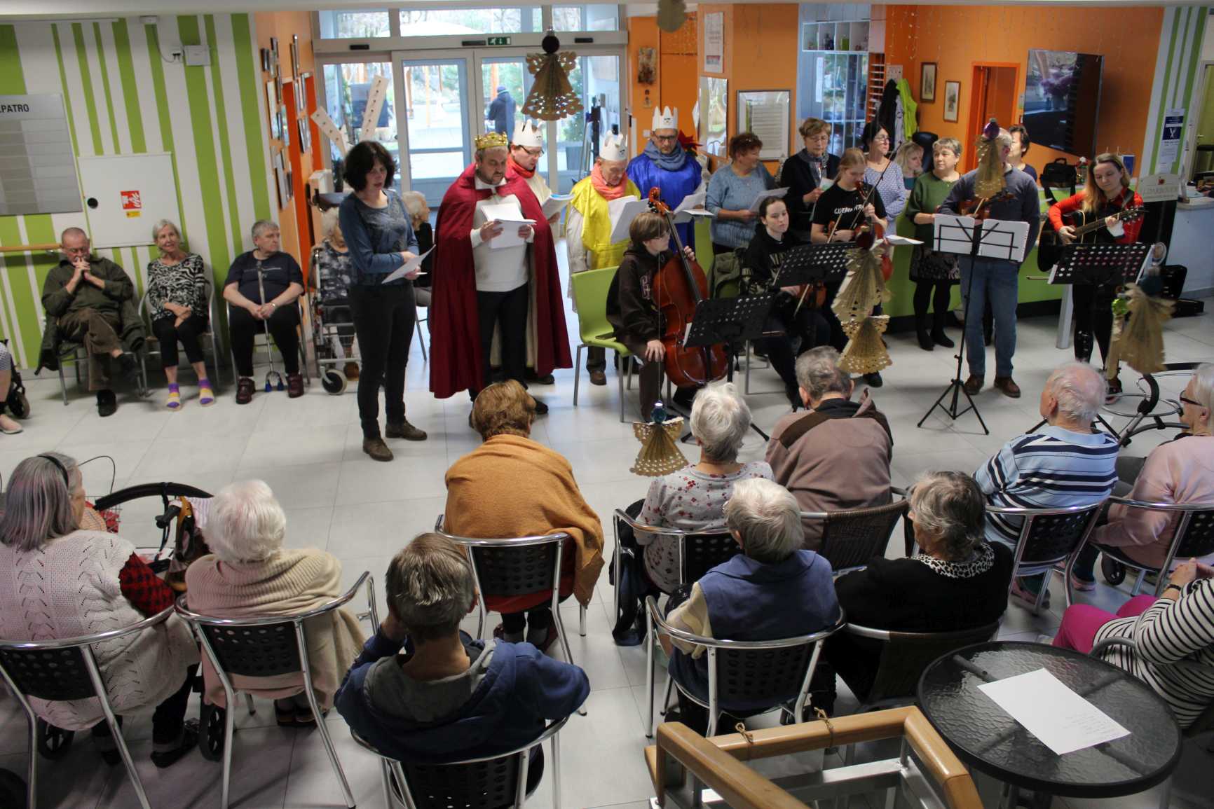 V pátek dopoledne vystoupil soubor z farnosti v Uhlířských Janovicích s recitačně hudebním pořadem: "příběh o narození Ježíše".