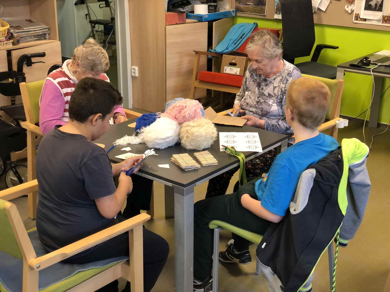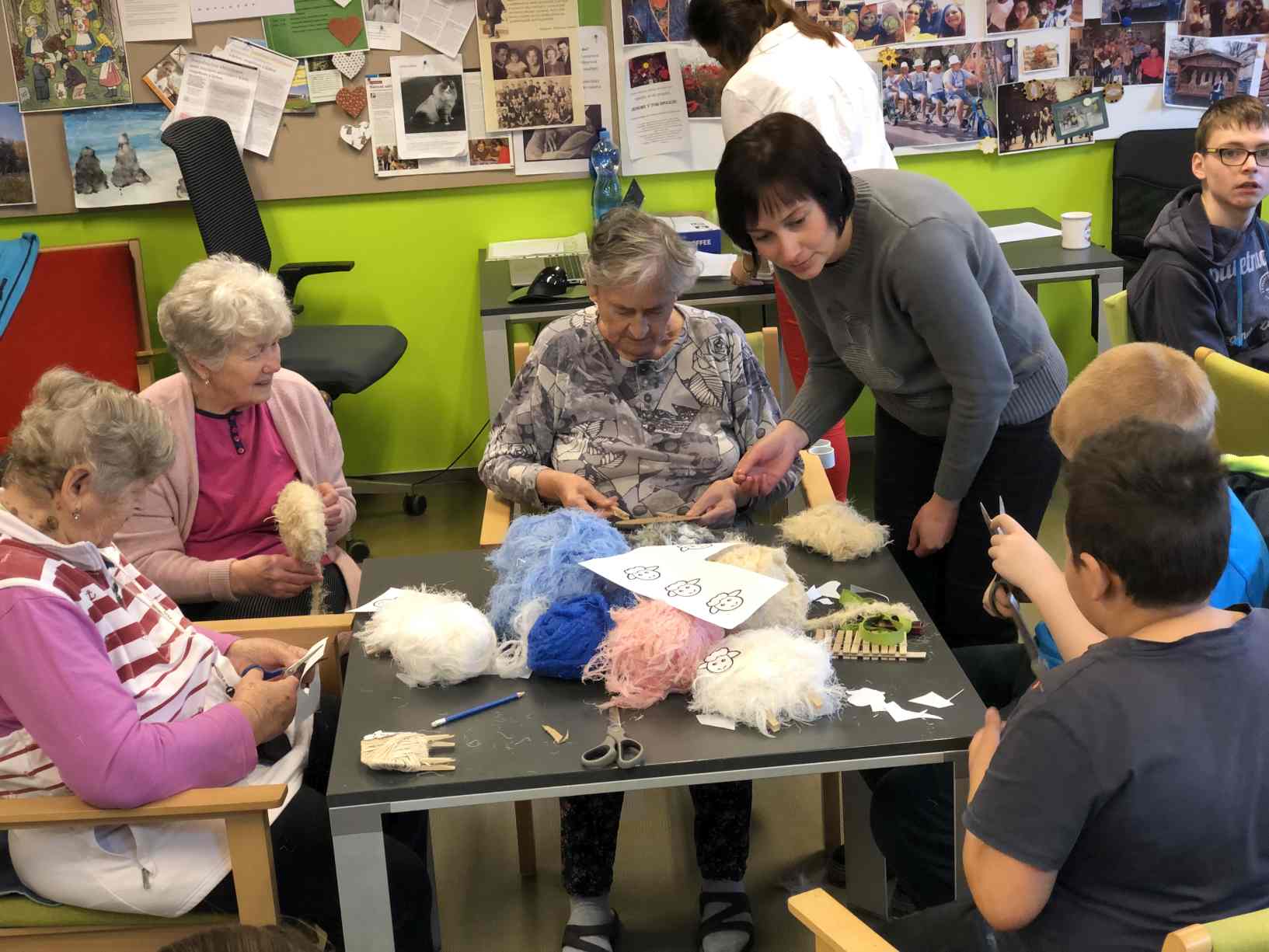 V pátek nás navštívily děti ze speciální ZŠ a společně jsme tvořili jarní výzdobu z vlny a kartonu.