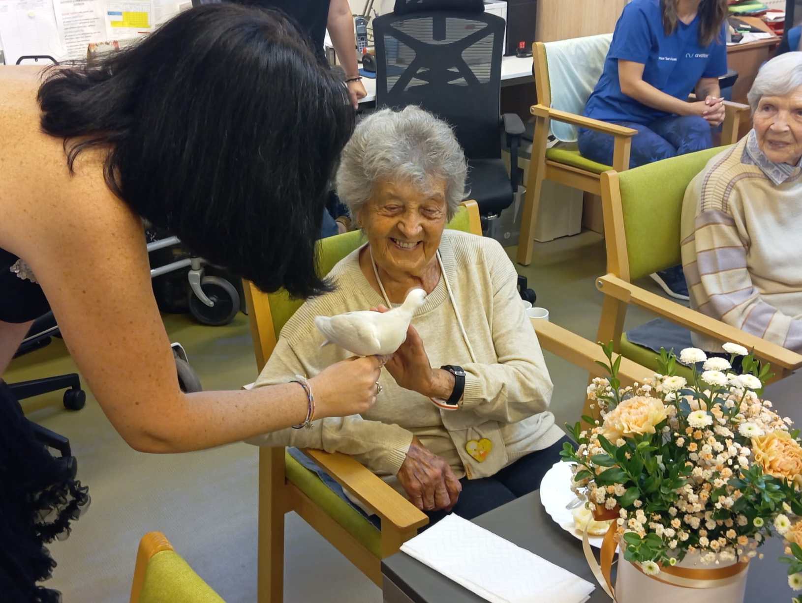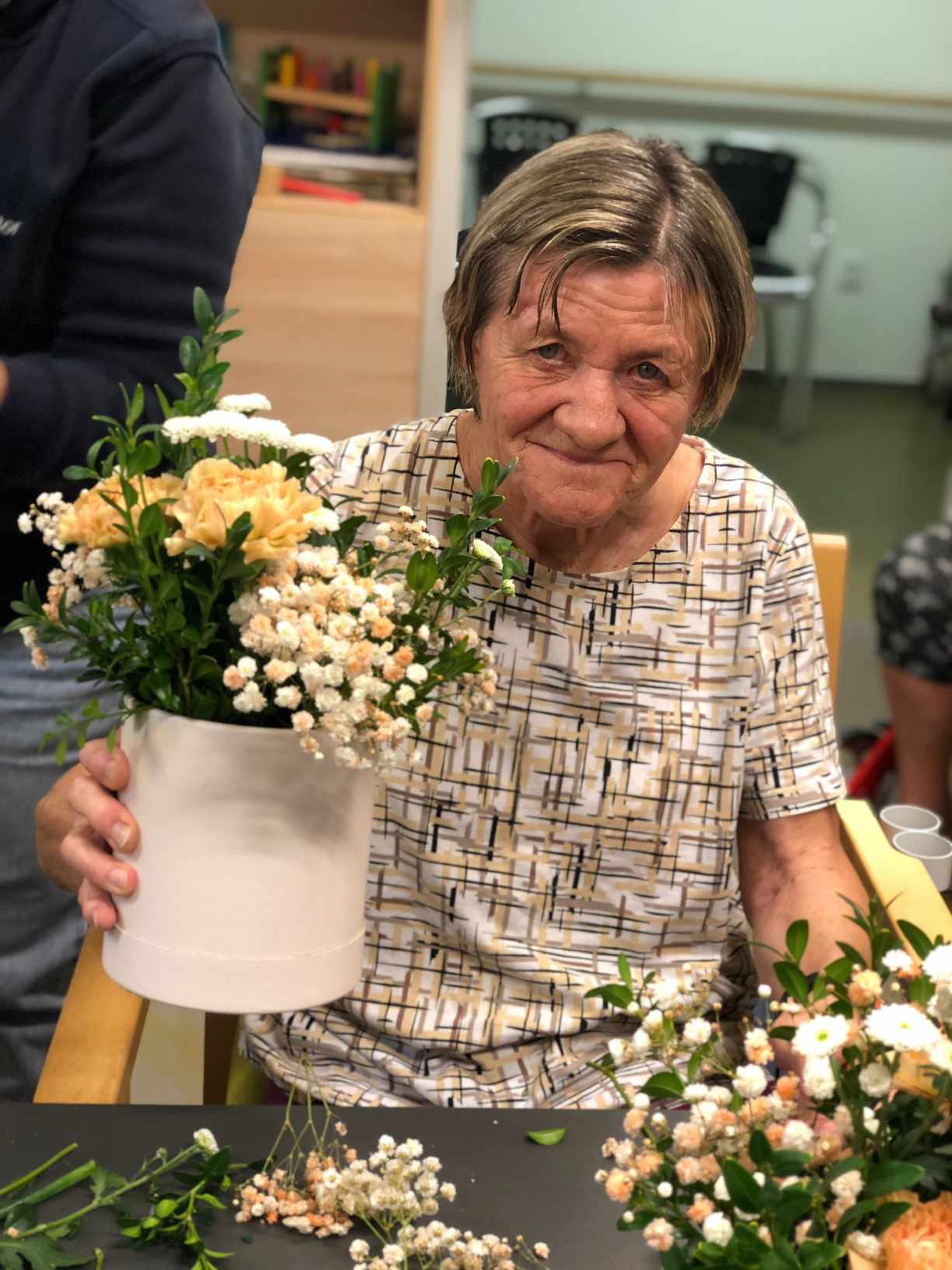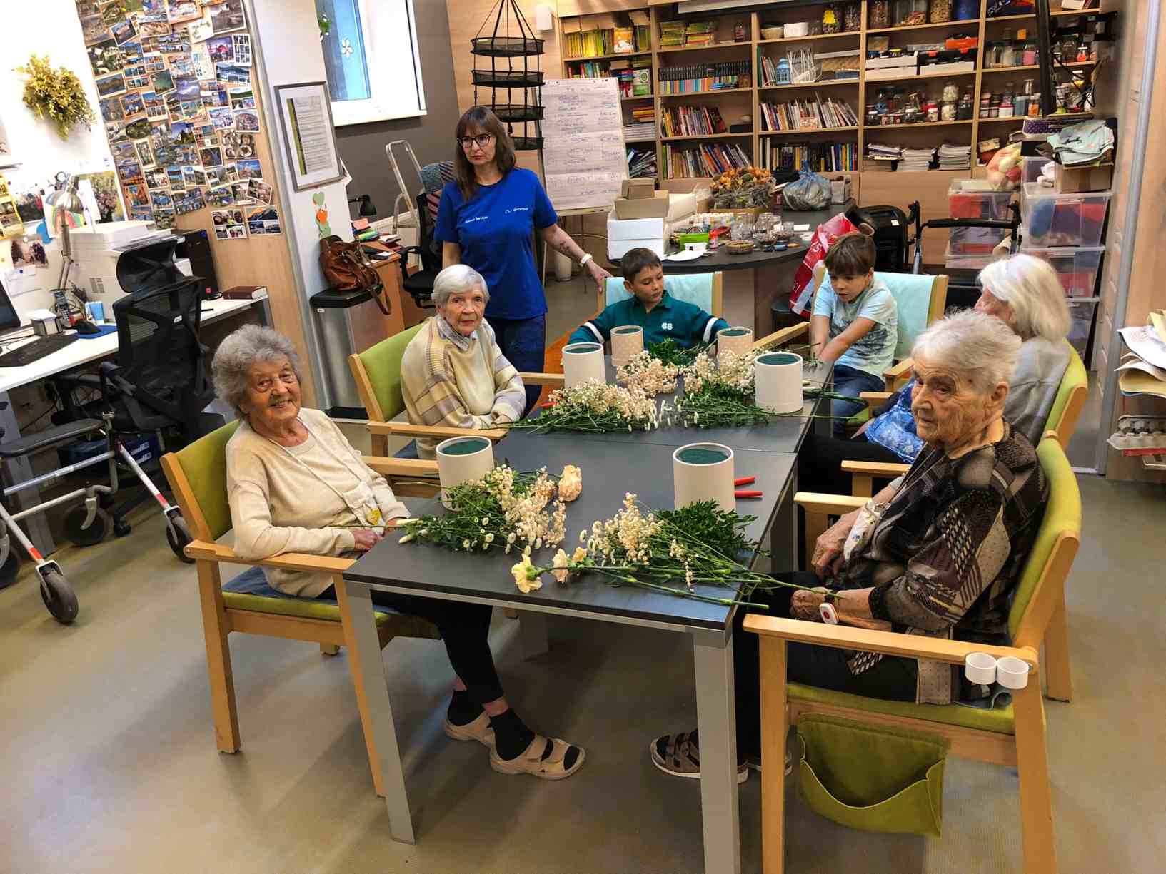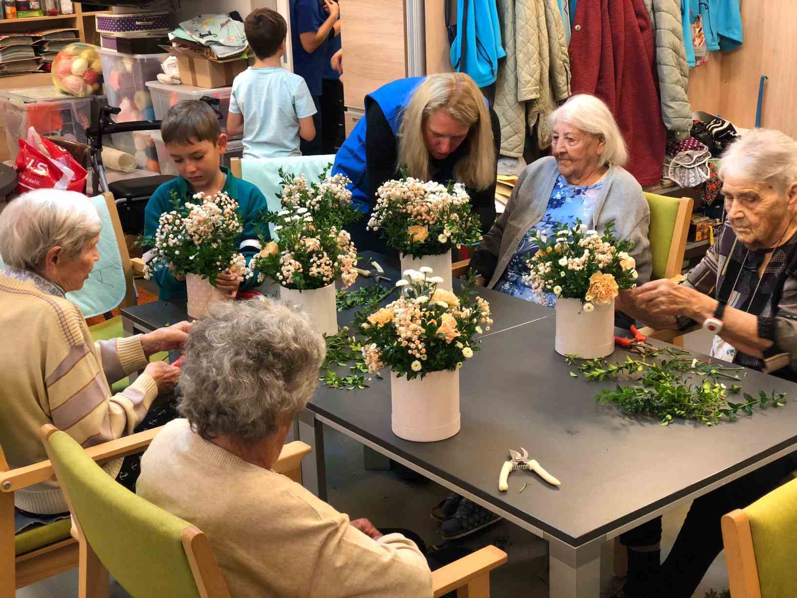 V sobotu 5. října pro nás firma Avantor ze Stříbrné Skalice připravila krásný výtvarný workshop, ale především nám zprostředkovala dopoledne plné zážitků. Deset našich klientek si mohlo vyrobit pěknou dekoraci z květin tzv. Florbox. Karafiáty, Nevěstin závoj i Chryzantémky v podzimních barvách tak budou dělat našim klientkám radost na pokojích, především ale naše dámy odcházely se skvělým pocitem, co krásného ještě zvládnou vyrobit. Úžasný nápad! Kromě vyrábění nám přinesli i moc dobré pohoštění ze sázavské cukrárny. Celé dopoledne zpestřila ještě na závěr návštěva kouzelnice Renáty. Samozřejmě se všichni ptali,“ jak to ta žena dělá?“, ale kouzelníci svá kouzla neprozrazují. :)